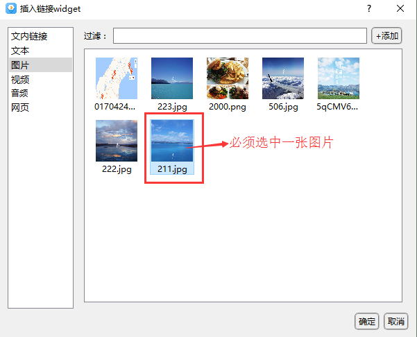 答:通常在鏈接控件的編輯界面,需要在資源庫(kù)中選中一個(gè)資源文件后,點(diǎn)擊添加才可以。用添加圖片鏈接舉例說(shuō)明:如下圖,在鏈接widget界面插入圖片時(shí),必須選擇圖片,否則會(huì)操作失敗。